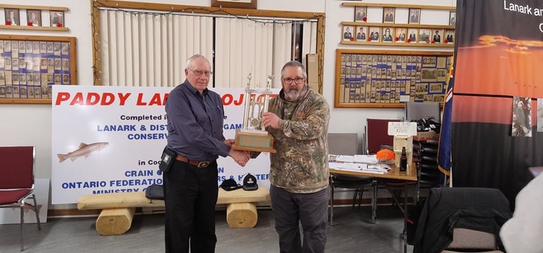 The Lanark & District Fish & Game Conservation Club again had a very successful Potluck Dinner and Awards Night on Saturday, March 22, 2025. The event was held at the Royal Canadian Legion in Lanark. 52 adults and 5 children consisting of Club members, family and friends enjoyed a great meal. The food, plentiful and delicious, the deserts amazing. A huge THANK YOU to all that contributed.
